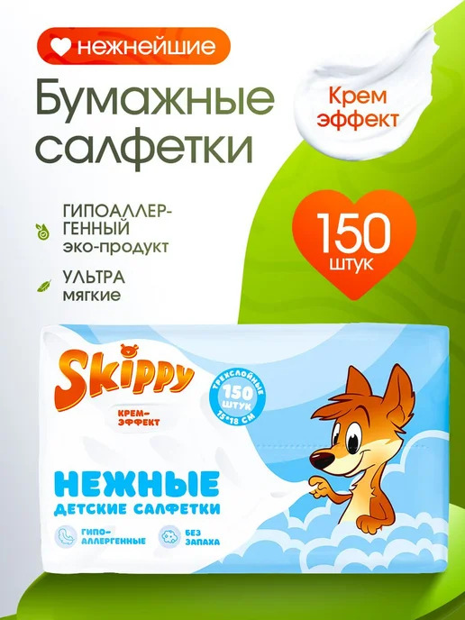 082 Skippy Нежные бумажные салфетки крем-эффект 150шт
