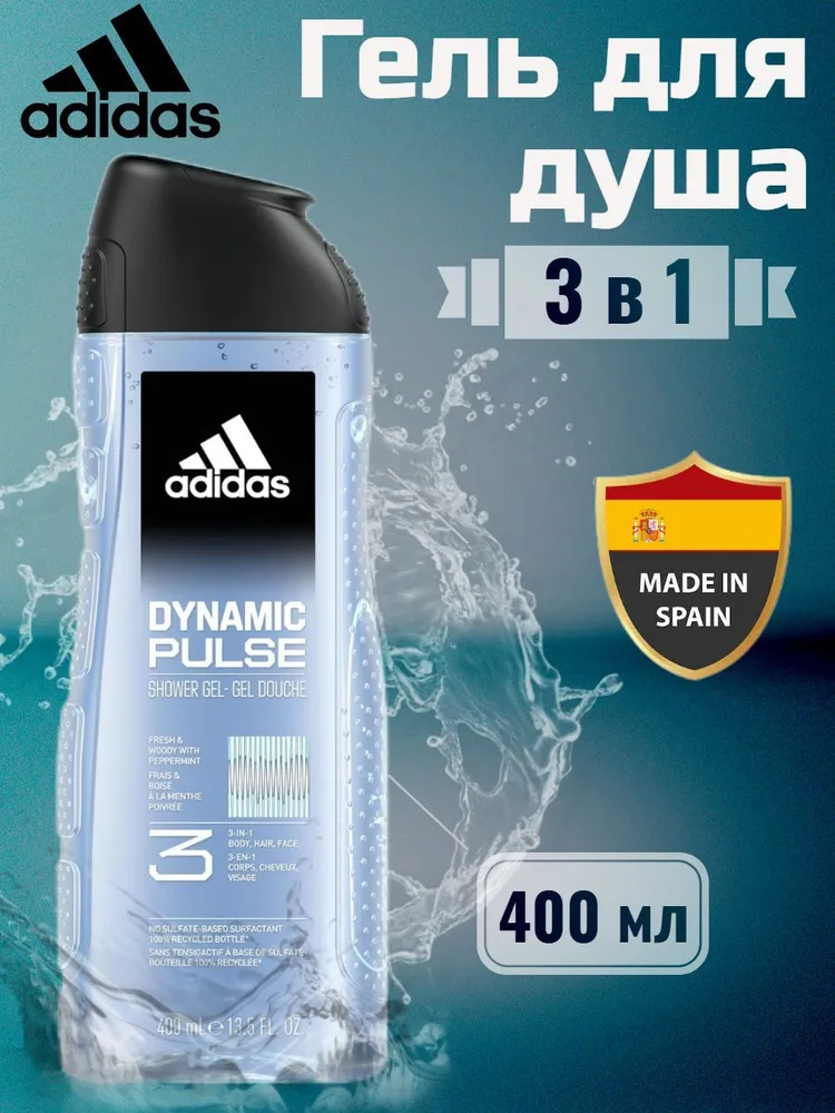 093 Adidas DYNAMIC PULCE Мужской Гель для душа 3 в 1, 400мл, Испания