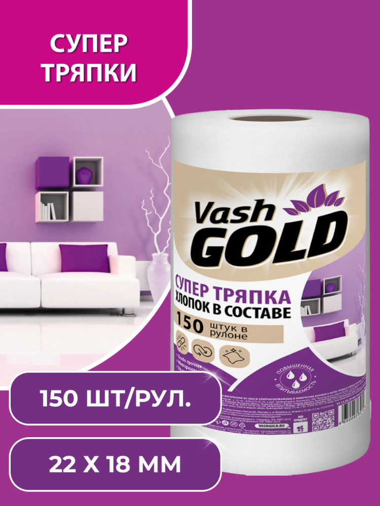 Super тряпка в рулоне для ежедневной уборки для дома, 150 шт в руллоне. Серия рулонных тряпок разработана специально для тех, кто привык заботиться об окружающей среде и выбирает эко-продукцию для себя, своих детей и животных. Салфетки Ваш Голд универсальны в применении, а хлопок в составе увеличивают их впитывающую способность. Экологичные рулонные тряпки Вашголд удобны и экономичны, не оставляют ворсинок, возможно многоразовое применение. Vash GOLD – мы облегчаем жизнь людей в повседневных заботах, так как изменили подход к уборке.